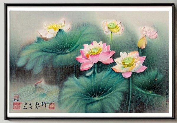 展厅二楼的沉浸式光影厅,播放着陆万运最新创作的数字水墨动画《千荷映月》。八分钟的短片里,3D建模的荷塘随着古琴声起伏,荷叶翻飞间穿插着艺术家手稿的数字化展示。"这是我送给Z世代的见面礼。"陆万运在开幕现场笑称。这种传统与数字的交融,让95后观众秦女士感慨:"原来水墨画竟能这么潮!"在作品《藕断丝连》前,参观者自发排起长队。这幅以微观视角刻画荷塘底部的作品,通过超写实手法展现藕节间的纤细丝缕。"这些丝线象征着文化传承的筋骨,"策展人王黎解读道。有趣的是,现场设置了VR体验区,参观者可"潜入"画中荷塘底部,亲手触摸虚拟的藕丝,这种虚实结合的体验,将艺术鉴赏转化为沉浸式文化记忆。陆万运艺术工作室的临摹区同样人气爆棚。馆方提供的特制宣纸允许观众在专业指导下自由创作,所绘荷花将被录入《千人荷》数字长卷。这项全民共创计划,让展览突破了传统的观展模式。"陆老师的工作台永远向公众敞开,"工作人员指着展厅一隅摆放的旧木桌介绍,"那些散落的画稿记录着二十年来每个创作瞬间。"